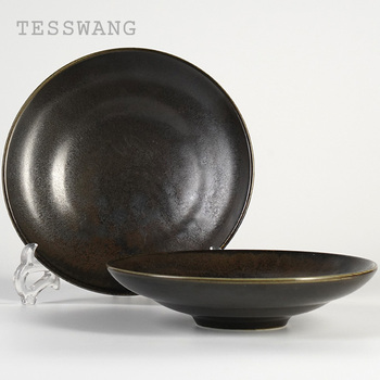 Plato creativo de cerámica para sombrero de paja, nicho pequeño especializado, diseño moderno, logotipo personalizado, cocina occidental negra, pescado para Sushi