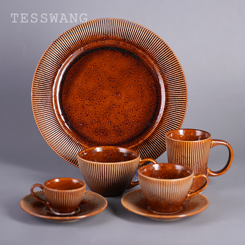 Vajilla de cerámica acanalada de tonos Óxido de primera calidad, juego de vajilla, colección