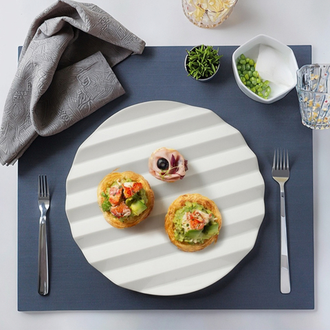 Plato de cerámica blanca con patrón de lino en relieve de gama alta, vajilla especial creativa para restaurante plano para juego de vajilla occidental