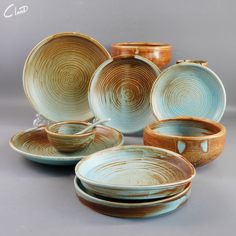 Juego de vajilla de cerámica personalizado Retro de estilo japonés para comedor en casa diseño rústico personalizable para hoteles