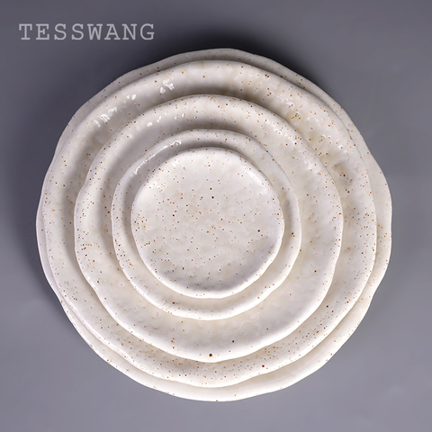Estilo nórdico de lujo, plato de cerámica de postre de celosía de patata blanca pura, patrón personalizable, venta directa, platos de fábrica, vajilla